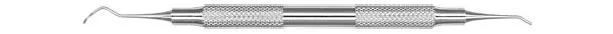 Columbia curettes have shorter, more curved and slightly wider blades. It accommodates root depressions in shallow pockets. The round head removes stains from the front of the tongue.